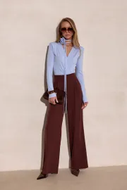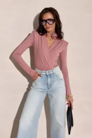 Diana ist ein Body in elegant-femininer Silhouette, der die Figur stilvoll umschmeichelt. Das Modell überzeugt mit einem weich fallenden, überlappenden Vorderteil und einer feinen Drapierung, ergänzt durch einen schmalen Bindegürtel mit dekorativer Rose. Die langen Ärmel und die körpernahe Linie betonen die Silhouette harmonisch und formen dank des elastischen Materials eine anliegende, gleichzeitig komfortable Passform.