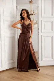 Salma to elegancka suknia wieczorowa, która zachwyca płynną sylwetką i kobiecymi liniami. Model ma podkreślający figurę dekolt w kształcie litery V, delikatne ramiączka oraz długą spódnicę z charakterystycznym rozcięciem, które nadaje projektowi nowoczesnej lekkości. Delikatnie dopasowany krój w stylowy sposób podkreśla sylwetkę. Sukienka zaprojektowana i wyprodukowana w Polsce, idealna na uroczystości, specjalne okazje i eleganckie wieczorne wyjścia.