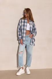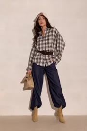 Salina – oversize koszula w kratę z długim rękawem | Roco Fashion