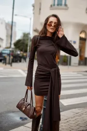 Nevira to sukienka mini z długim rękawem, charakterystycznym drapowaniem w talii oraz efektownym wiązaniem, które podkreśla sylwetkę i dodaje nowoczesnego charakteru. Dzięki poduszkom na ramionach całość zyskuje wyrazistą linię. Uszyta w Polsce, co gwarantuje wysoką jakość wykonania i dbałość o detale. Zestaw ją z klasycznymi szpilkami i kopertówką, aby stworzyć szykowny look idealny na wieczorne wyjście.